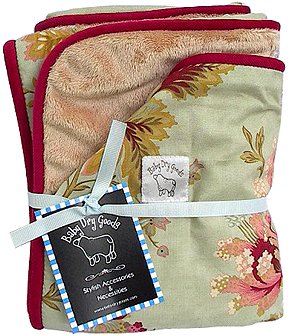 These 100% cotton blankets are backed in a luxurious minkee fabric and trimmed with coordinating piping. Machine washable and ohhh, so soft! Perfect for draping over baby in the stroller. Blanket size: 27.5" x 33." Coordinating Cozy Burp Cloths, Big Wipe-Off Bib, Splat Mat/Craft Mat, Hooded Towel/2 Washcloth Set, and also a Diapering Attaché with Diapering Blanket (a.k.a. "changing pad") also sold at Baby Gift Idea.