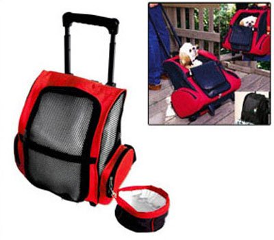 This Pet Carrier Backpack/Stroller will make your pets trip as comfortable as can be!!! It is a rolling carrier for effortless travel. It becomes a backpack for convenient handling. Compact enough to be placed anywhere; like next to your seat when you travel!Included is a portable food/water container, all around ventilation for your pets health and viewing convenience. We all know how our pet likes to keep an eye on their master!