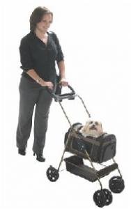 This Pet Stroller is ideal for Dogs, Cats, Puppies, Kittens, Small Dogs, Small Animals, Older Pets, Ferrets, Monkeys, or anything else that cares to ride! The Essential Pet Stroller(TM) and Pet Carrier is an industry first. Combining the convenience of a pet stroller, with the function of a removable airline approved carrier, and the designer look that any fashion conscious pet owner requires, this is a must buy for the pet lover with a sense of style: Do you travel? Imagine the convenience of being able to wheel your pet right through the airport, directly to check in. You can gate check the collapsible frame and carry your pet right onto the plane. No more book bag or luggage style carriers that flip over as you drag them behind you. Gone are the aching back and shoulders caused by trying to carry your pet, along with your luggage through the airport. The Essential Pet Stroller will make traveling with your pet a pleasure...not a pain: Even if you don't travel, the Essential Pet Stroller(TM) is the perfect way to take your pet for a walk and show off your sense of style around the neighborhood. Plus you can use the detachable Pet Carrier to take your pet with you anywhere you need to go! Features: Spacious 18" x 11.5" x 10.5" pet carrier is perfect for any small breed dog up to 15 pounds. Removable designer pet carrier for the fashion conscious pet owner Can be used by itself or with the stroller. Easy to clean, durable exterior. Zippered front "Breezeway" that can be opened to give your pet a better view and fresh air. Large mesh vented side and top areas to assure that your pet is always comfortable. Top opens wide for easy access with our convenient "Zip Strap", and gives your little loved one another place to peek out his head. Interior adjustable leash to keep your pet from taking a trip without you. Two carrying options to choose from: duffel bag style carrying handles or a stylish over the shoulder strap. Rear storage pocket and undercarriage storage